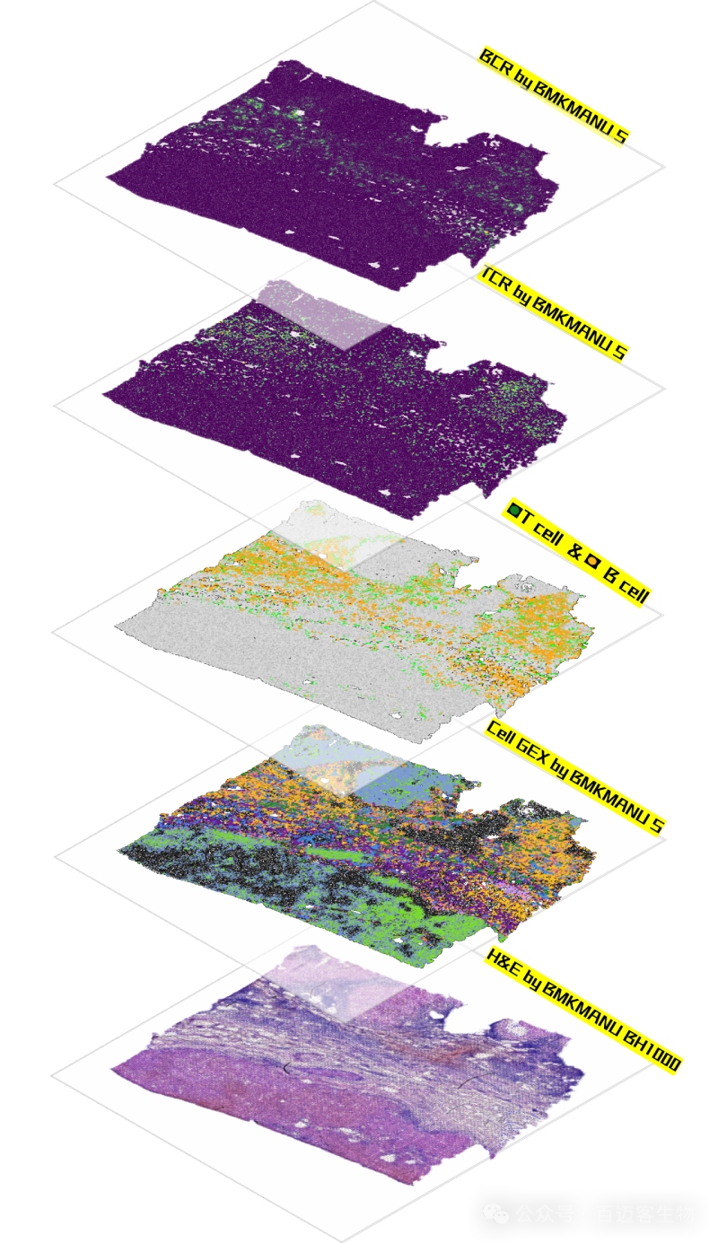 2024年12月,百邁客生物智能制造以廣受市場好評的亞細胞級S系列空間轉錄組芯片為依托,開發(fā)出了在原片上可同時捕獲3’端轉錄組信息以及全長B細胞受體(BCR)和T細胞受體(TCR)序列的空間T/BCR測序技術產(chǎn)品—BMKMANU?S3000-VDJ?,將填補這一技術產(chǎn)品的缺口。