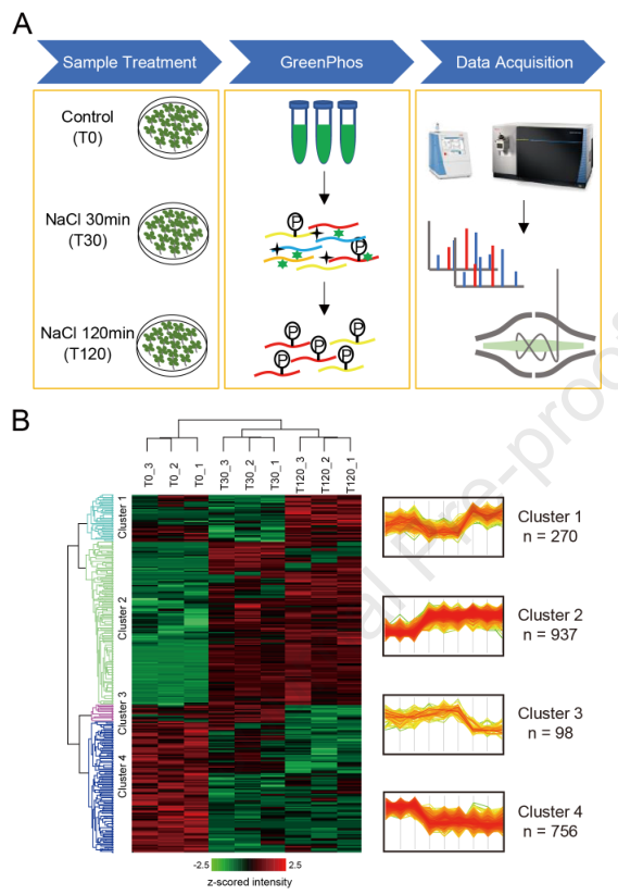 4.?利用GreenPhos對(duì)擬南芥鹽脅迫誘導(dǎo)的磷酸化蛋白組分析