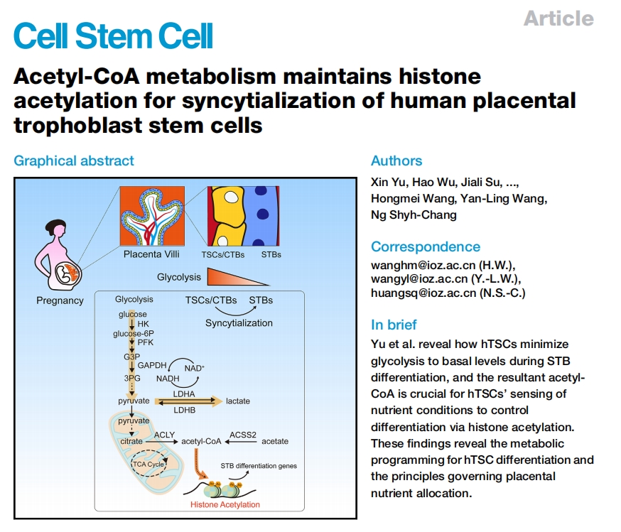 文章標(biāo)題:Acetyl-CoA metabolism maintains histone acetylation for syncytialization of human placental trophoblast stem cells