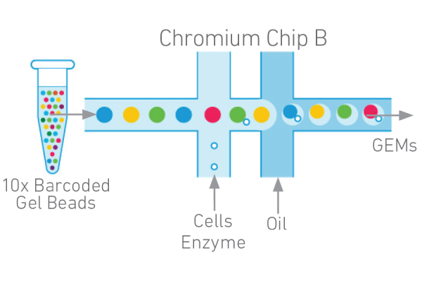 10 X Genomics單細(xì)胞轉(zhuǎn)錄組測序平臺利用微流控、油滴包裹和Barcode標(biāo)記等技術(shù)來實現(xiàn)高通量的細(xì)胞捕獲技術(shù),能夠一次性分離、并標(biāo)記500–10000個單細(xì)胞,從而獲得每個細(xì)胞的3’端的轉(zhuǎn)錄組信息。具有細(xì)胞通量高、建庫成本低、捕獲周期短等優(yōu)勢。該技術(shù)主要用于細(xì)胞分型和標(biāo)記因子的鑒定,從而實現(xiàn)對細(xì)胞群體的劃分與細(xì)胞群體間基因表達(dá)差異的檢測,此外該技術(shù)還可以預(yù)測細(xì)胞分化與研究發(fā)育軌跡,在當(dāng)下疾病、免疫、腫瘤領(lǐng)域以及組織、器官、發(fā)育研究中發(fā)揮越來越重要的作用。