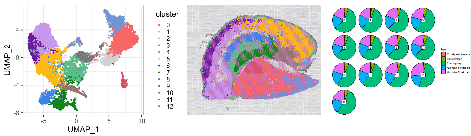 二代與三代數(shù)據(jù)的UMI/Gene counts per spot的相關(guān)性還是tSEN/UMAP的降維聚類,都顯示具有非常高的一致性。這充分說明百創(chuàng)S1000-Nanopore全長轉(zhuǎn)錄組產(chǎn)品完全可以獨立進行數(shù)據(jù)的拆分與挖掘分析,無需依賴NGS數(shù)據(jù)的校正。
