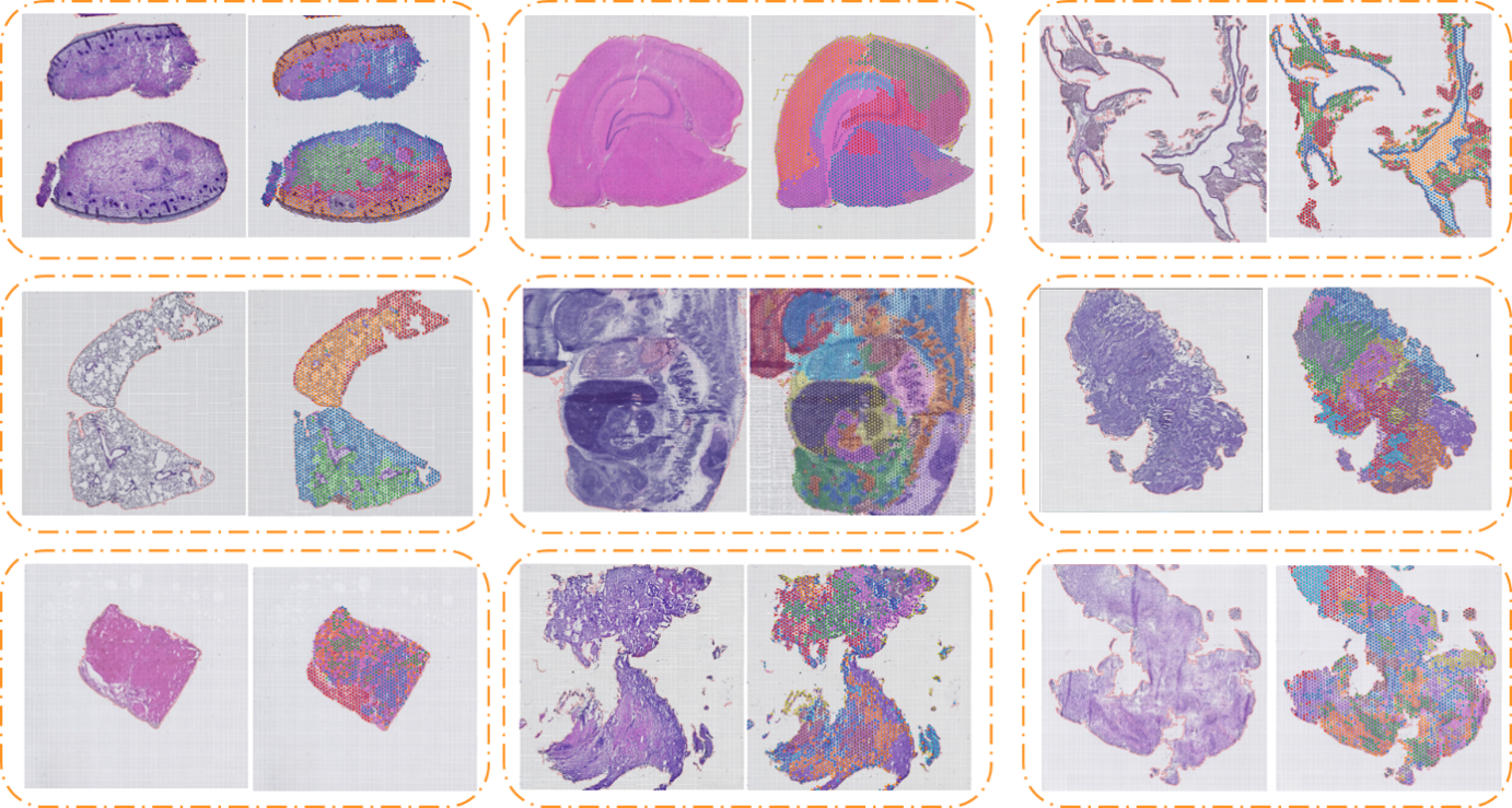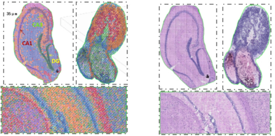 百創(chuàng)S1000空間轉(zhuǎn)錄芯片保留原片HE染色,結(jié)合高分辨率的spots聚類,能得到更為精準的結(jié)果。