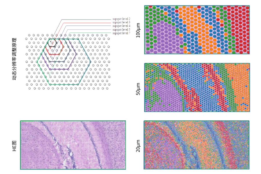 百創(chuàng)S1000空間轉(zhuǎn)錄芯片結(jié)果支持從100μm-4.8μm動態(tài)調(diào)整。